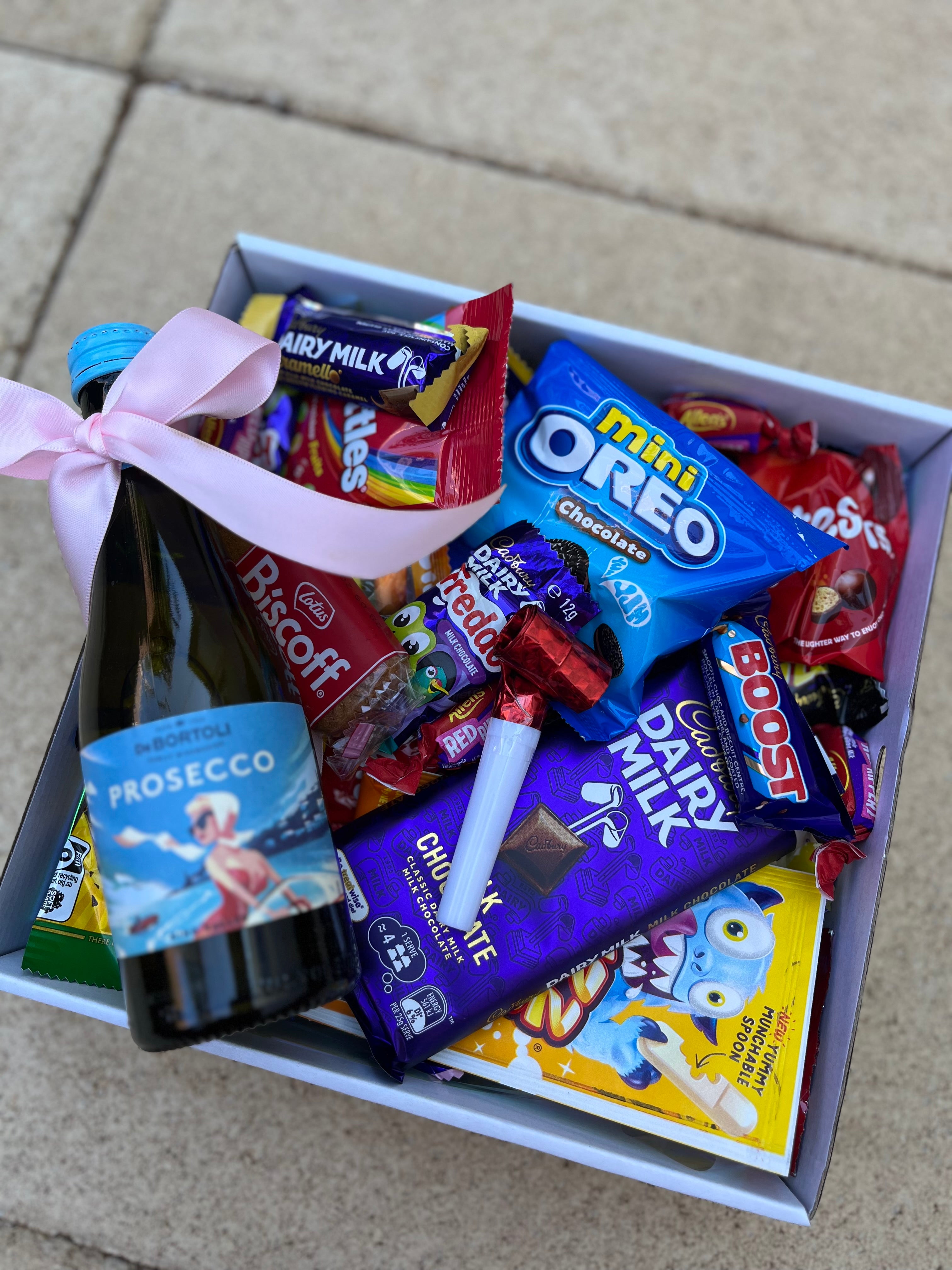 A spectacular treat for your friends and family. This Birthday Box is filled with everyone's favourites and a little something extra for the adults.